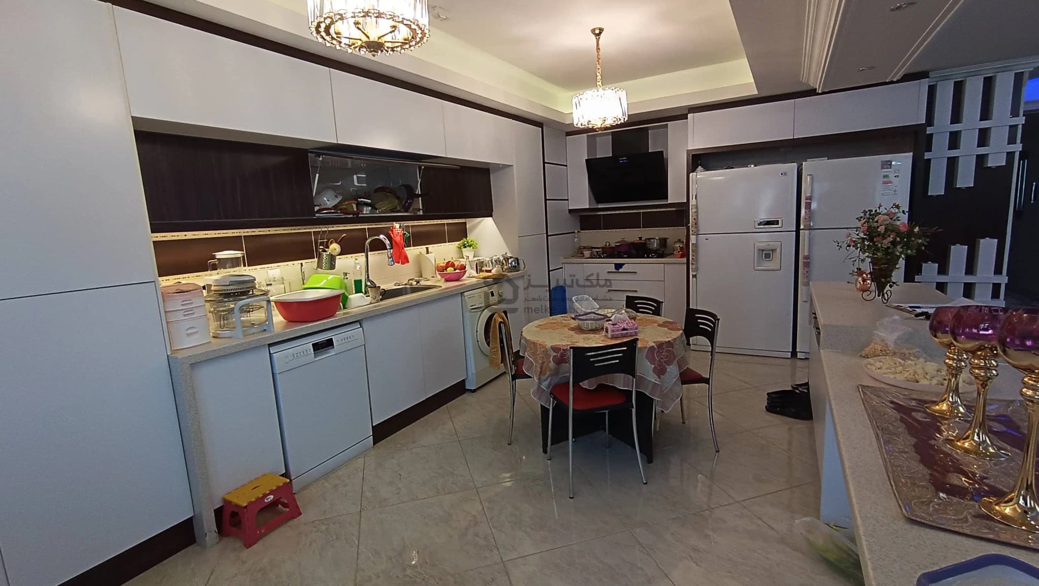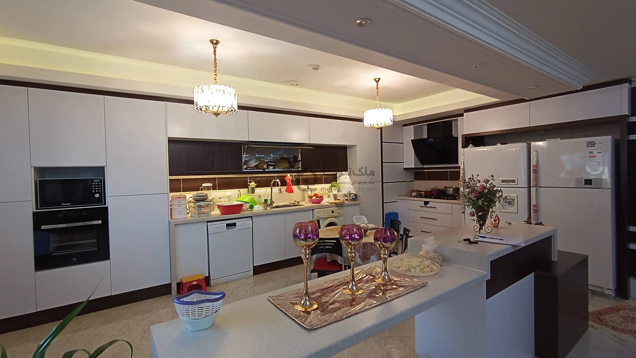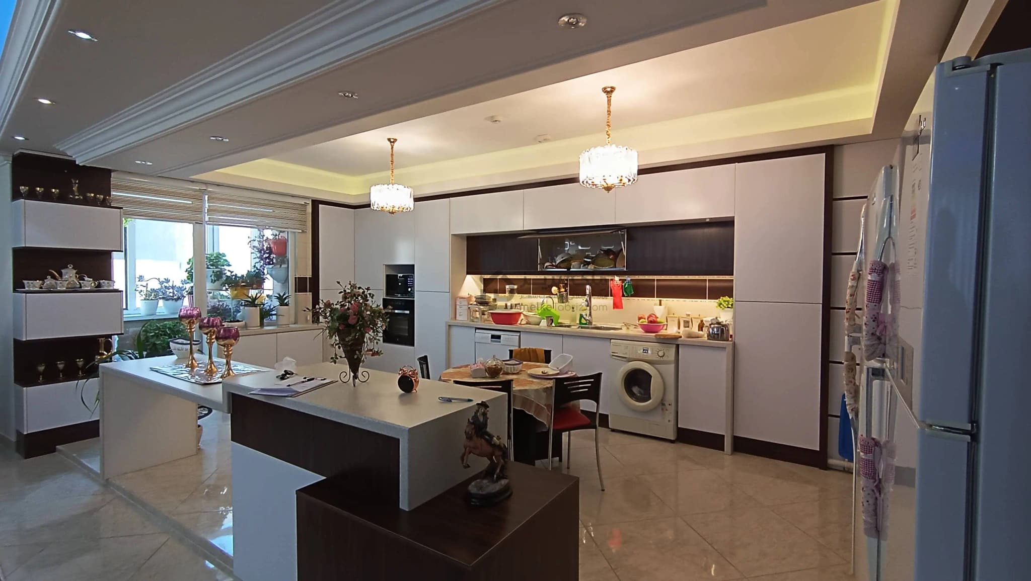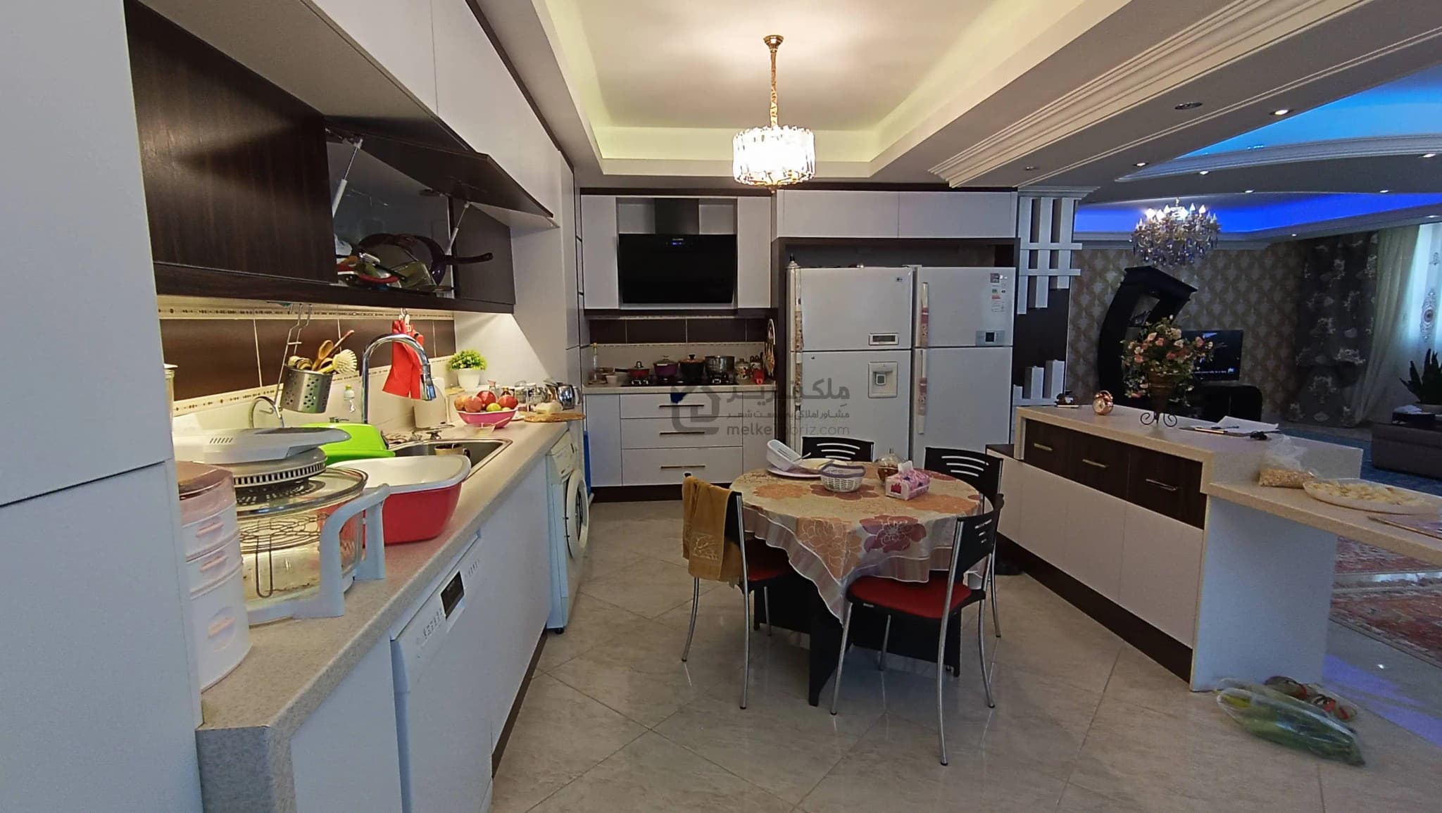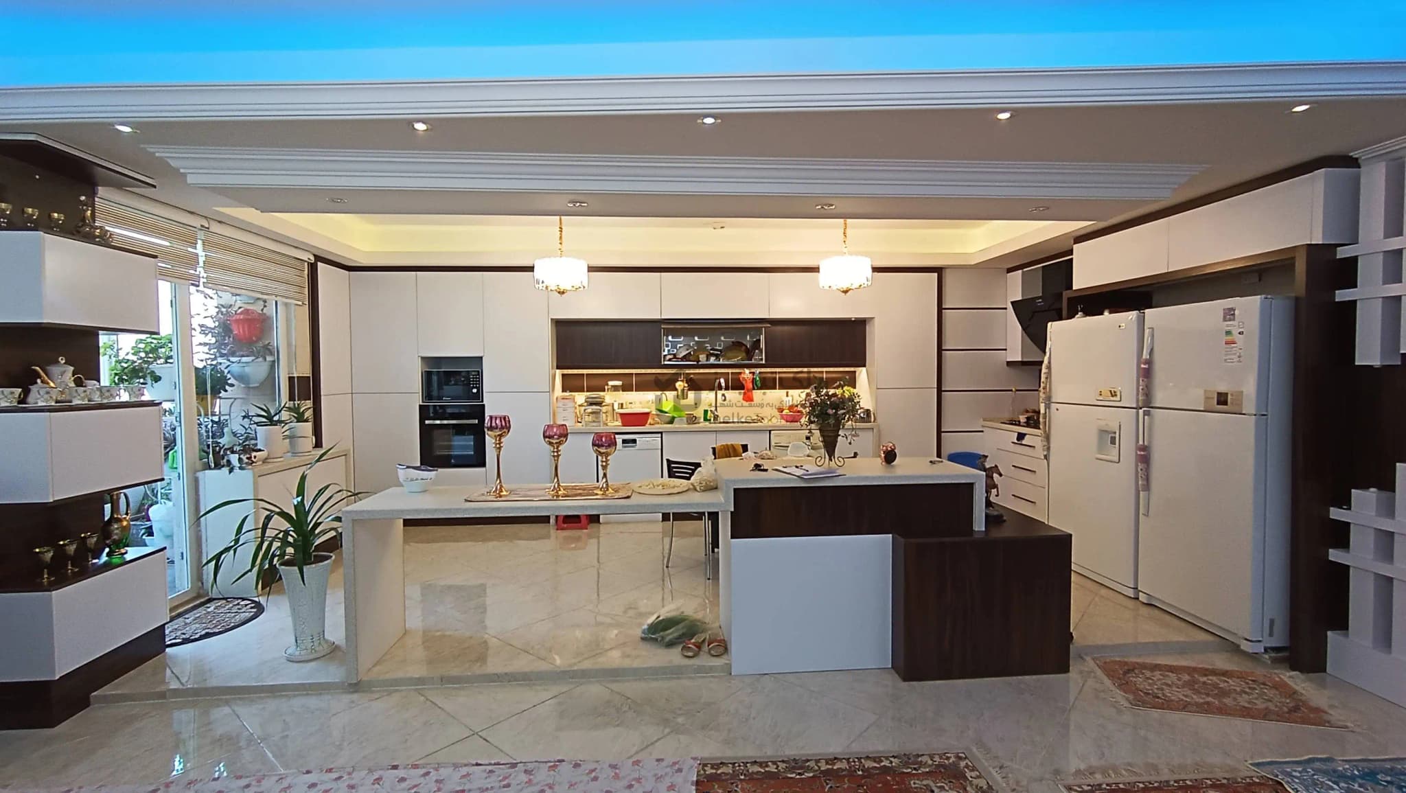 - نورپردازی سقف و نورپردازی کابینت آشپزخانه