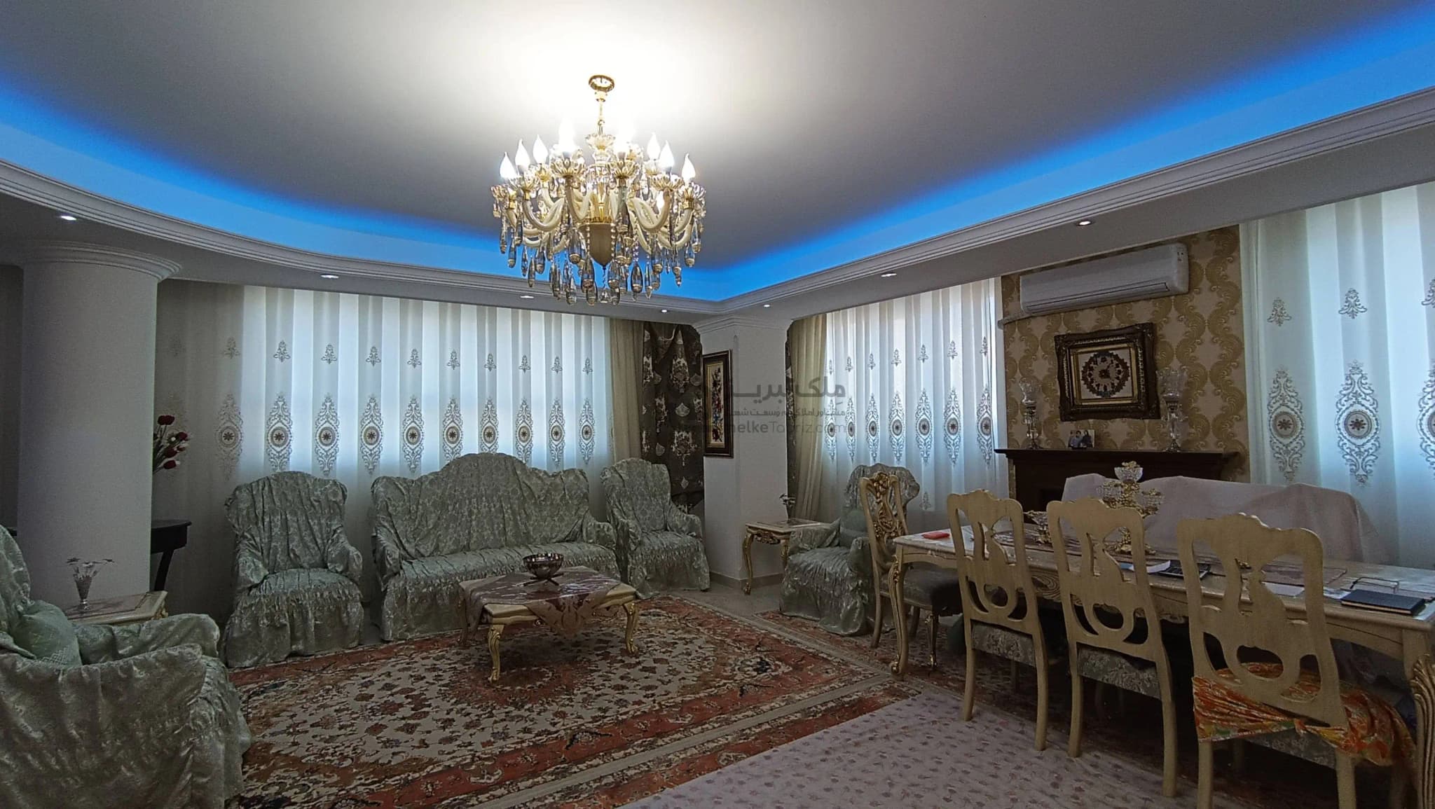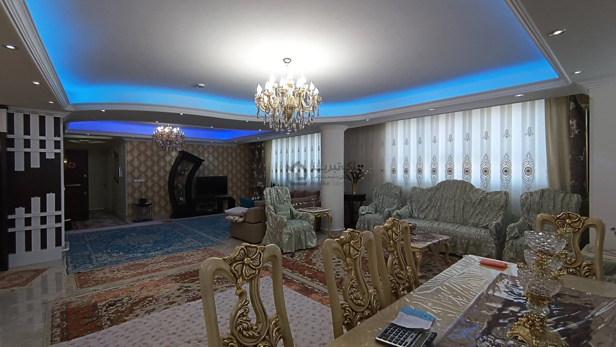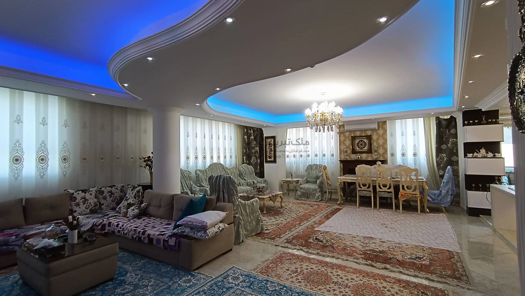 - پرده های شیک در تمامی پنجره های پذیرایی و اتاق ها