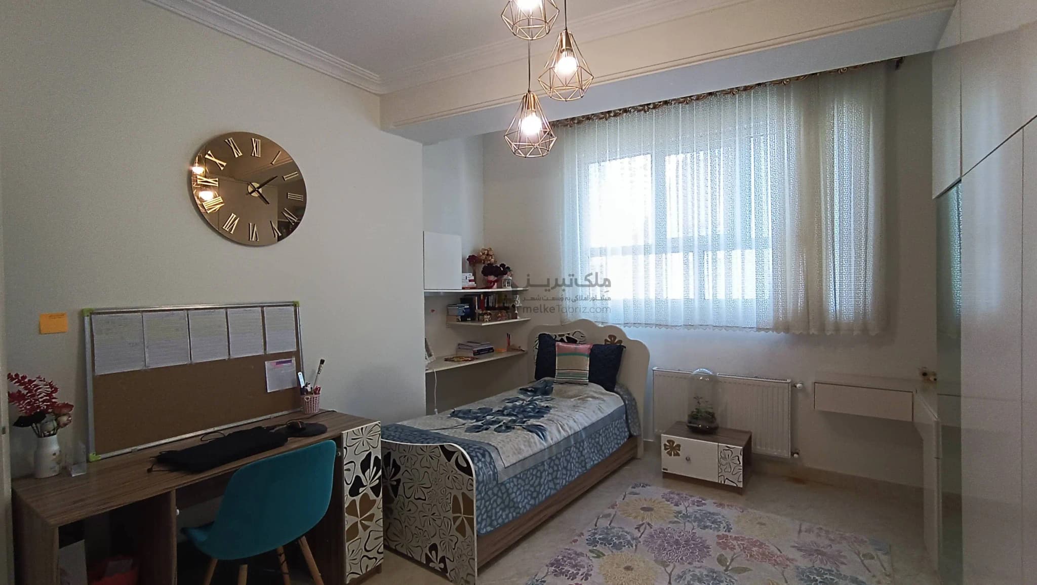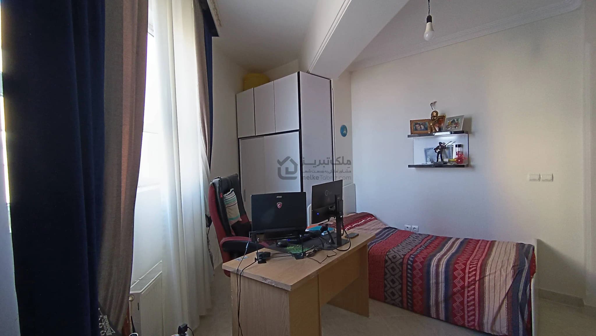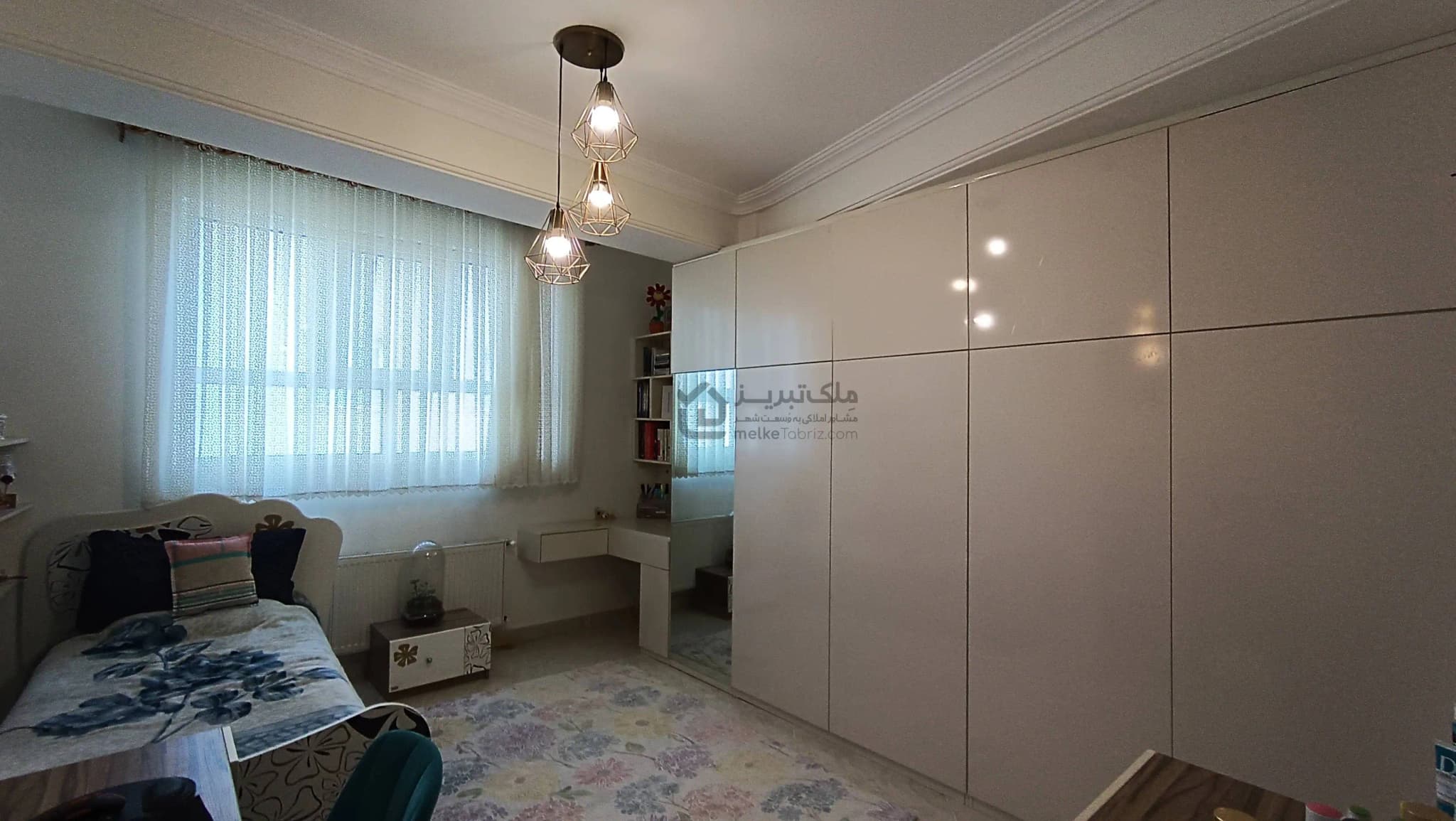 - پرده های شیک در تمامی پنجره های پذیرایی و اتاق ها