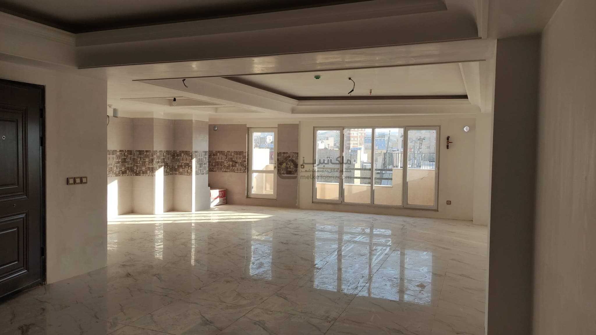 - پذیرایی بزرگ با نورگیری فوق العاده با پلان معماری عالی با کمترین پرتی